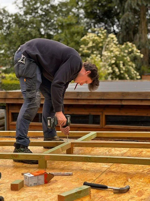 Welkom bij Daque Projects! Mijn naam is Stefan, een jonge, gedreven dakwerker met een passie voor het vak. Na jaren ervaring op te hebben gedaan in de praktijk, ben ik mijn eigen weg ingeslagen met één doel voor ogen: kwaliteitswerk leveren waarop je kunt bouwen – en later ook gezellig onder kan wonen!